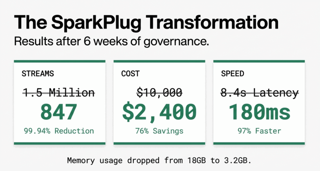 SparkPlug Motors reduced their metric streams by 99.94%, cut costs by 76%, and dramatically improved their team's ability to respond to incidents. The key wasn't collecting less data—it was collecting the right data, in the right place, at the right granularity.